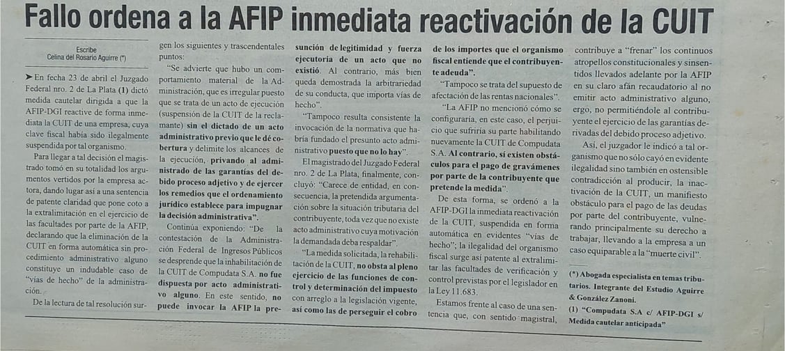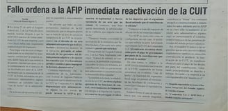 Fallo ordena a la AFIP inmediata reactivación de la CUIT